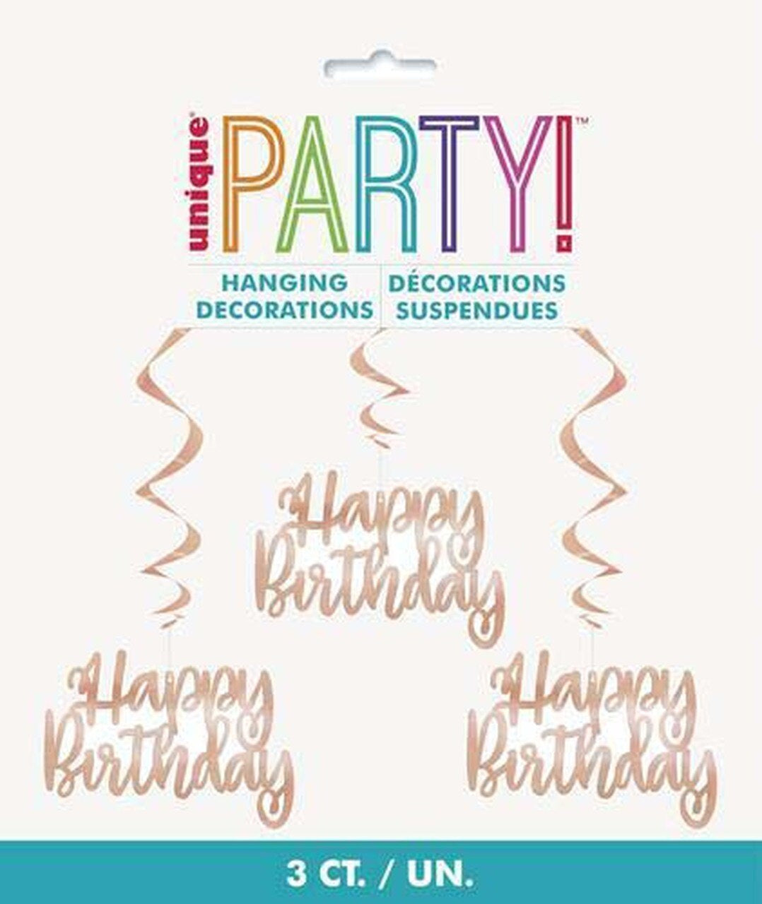 3 Hanging Swirls Happy Birthday Rose Gold