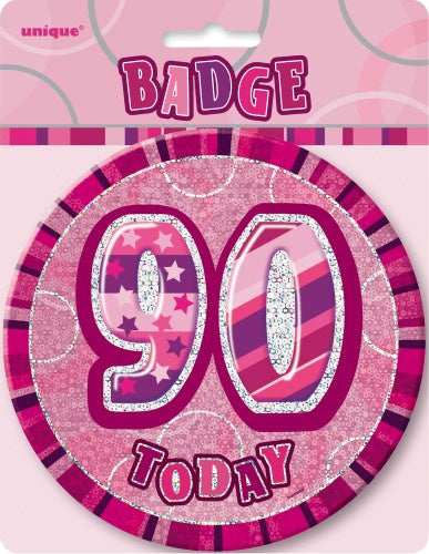 GLITZ PINK JUMBO 90TH BIRTHDAY BADGE