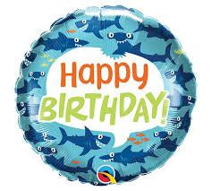 Happy Birthday Fun Sharks Foil Balloon 18"