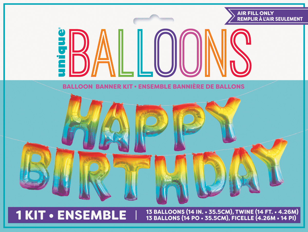 - Includes 13 foil letter balloons, 1 strand of twine (9ft long) and 1 straw.