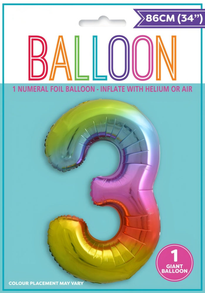 · Product Name: Rainbow "3" Numeral Foil Balloon 86cm (34")